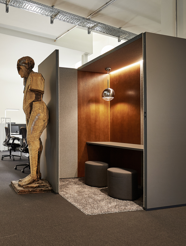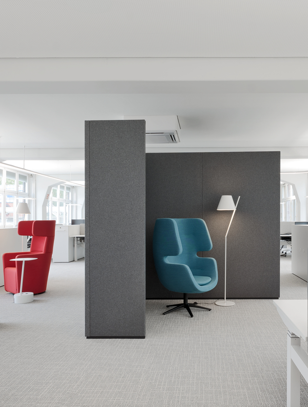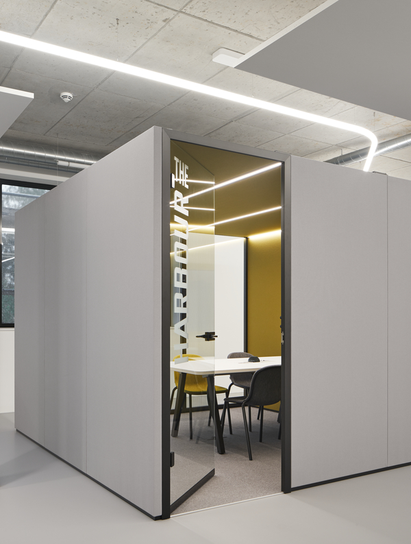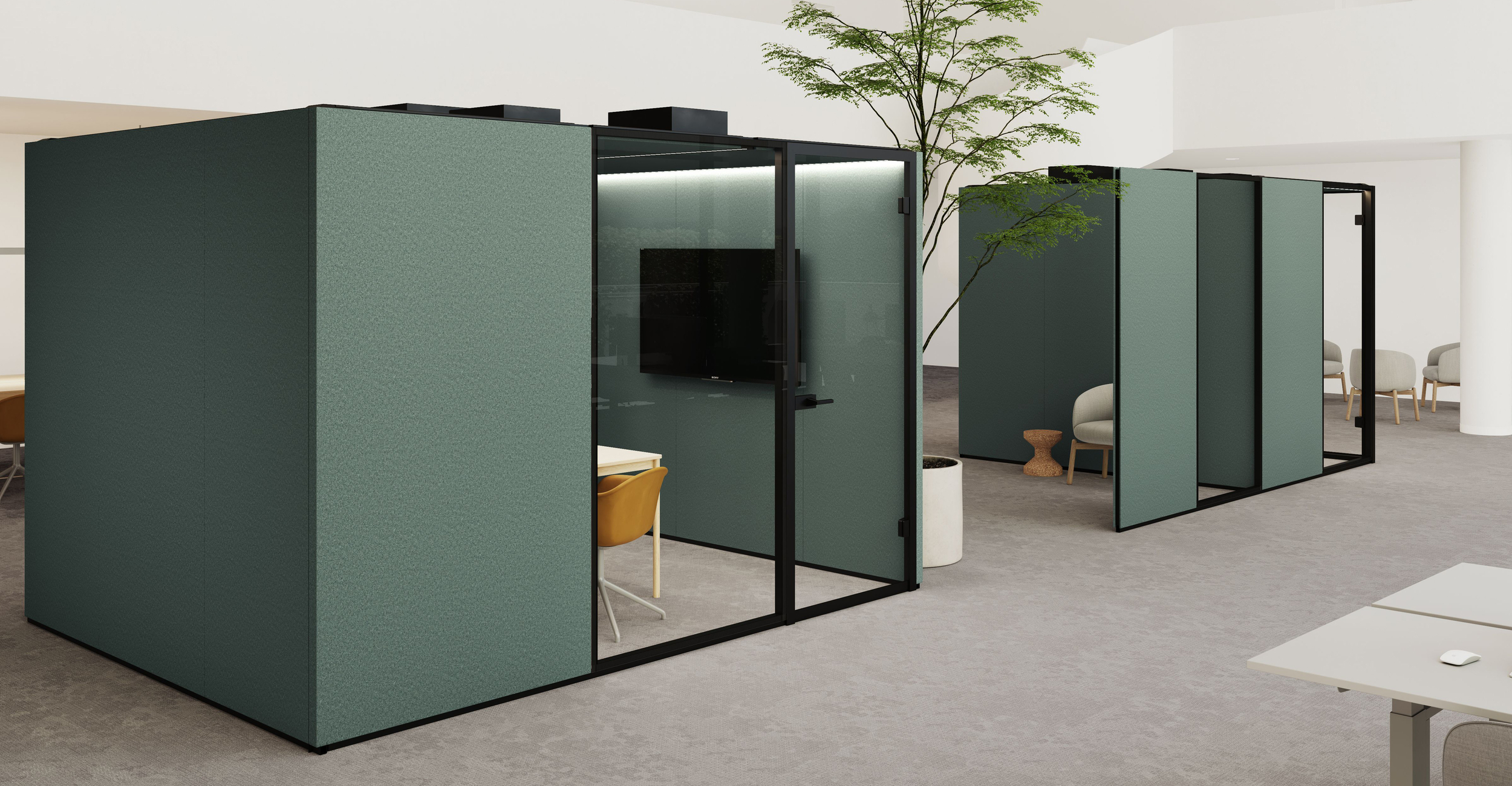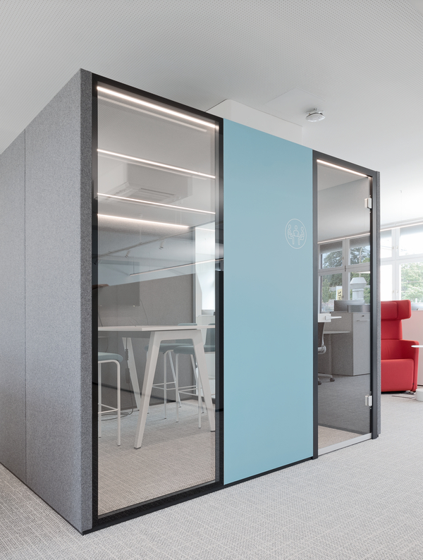 Featuring a large selection of modules, surfaces, connections and colours, the aesthetic value is outstanding and contributes to a large variety of room-in-rooms for undisturbed conversations, quieter work and relaxed meetings. In addition to these obvious advantages, our acoustic rooms work as effective sound absorbers reducing noise travelling across the room when placed strategically on the ground plan. Therefore, acoustic rooms can be very important to your acoustic design.