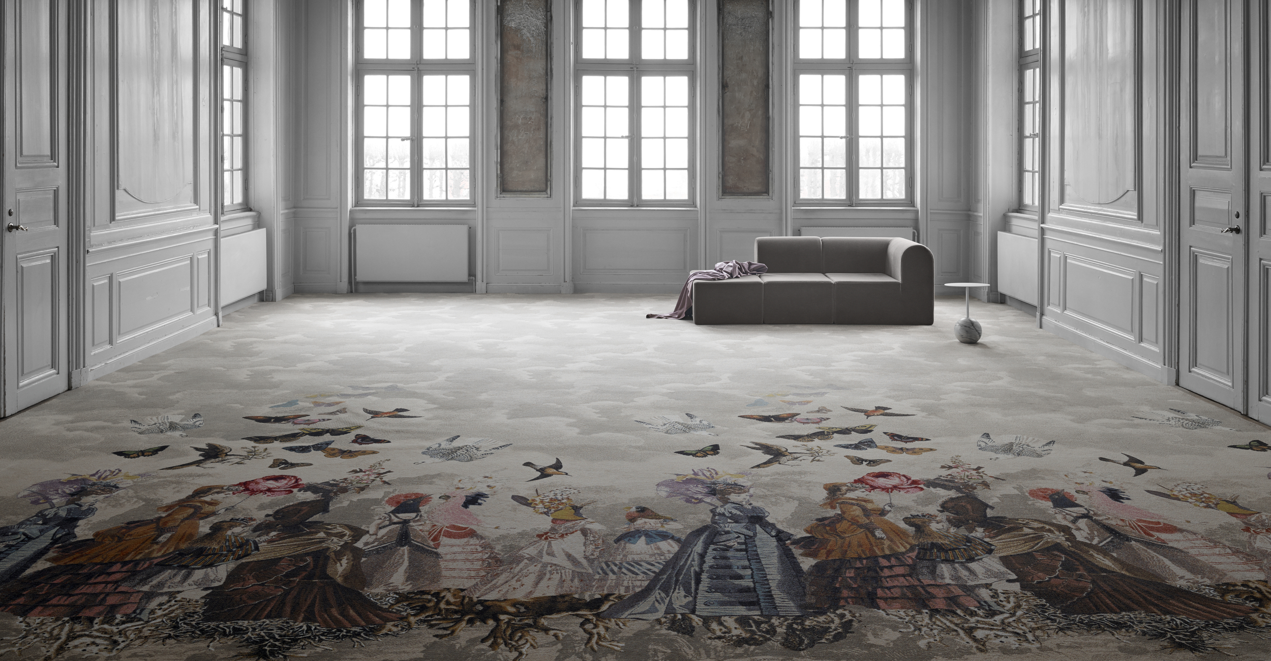 The degree of detail in patterns and colours made Ege Carpets a natural choice for this extravagant haute couture designer.